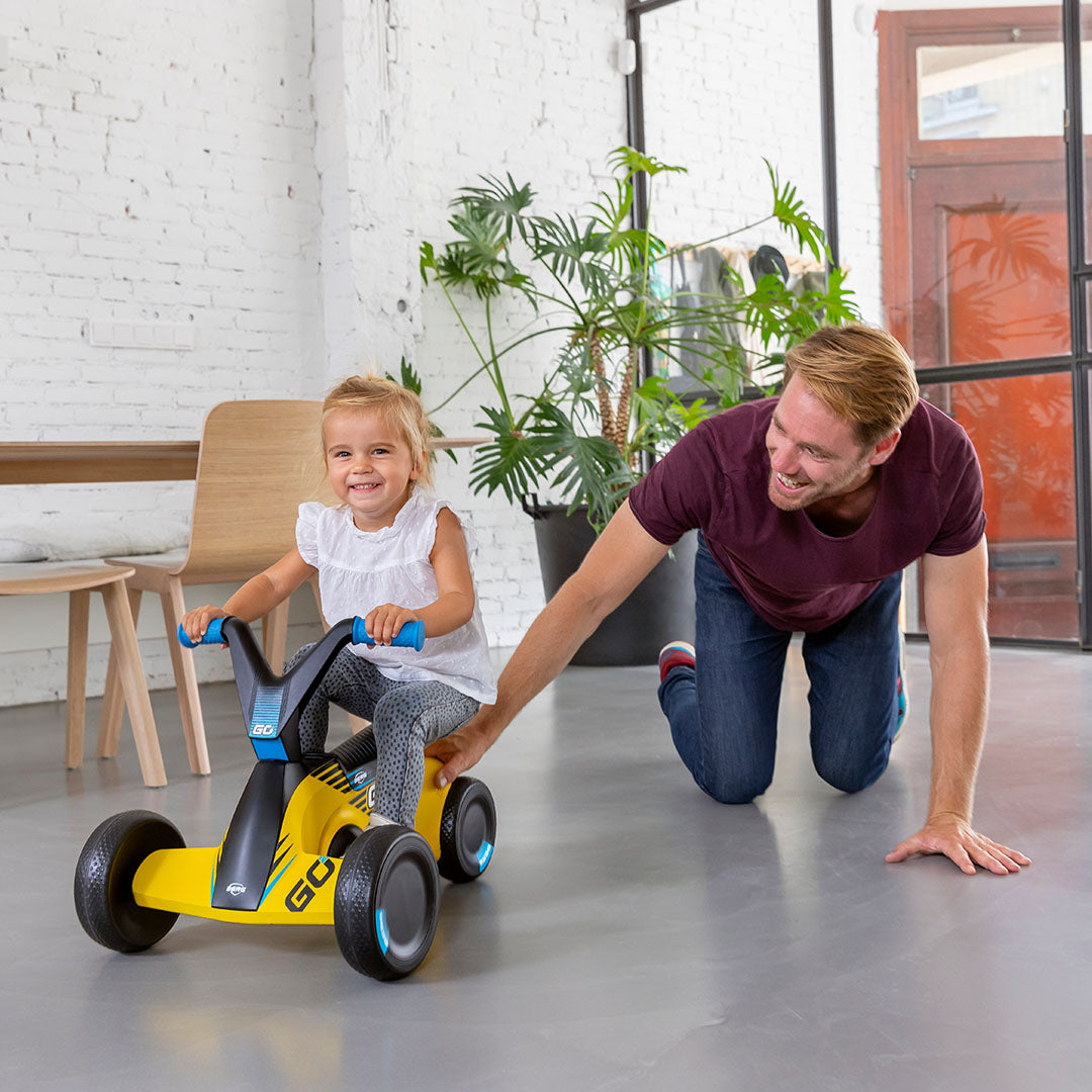 Schon die Allerkleinsten, also Babys und Kleinkinder, können mit dem BERG Go2 Rutschauto ab einem Alter von 10 Monaten erste Erfahrungen machen. Der BERG Go2 vereint die Funktionen eines Rutschautos und eines Gokarts in einem